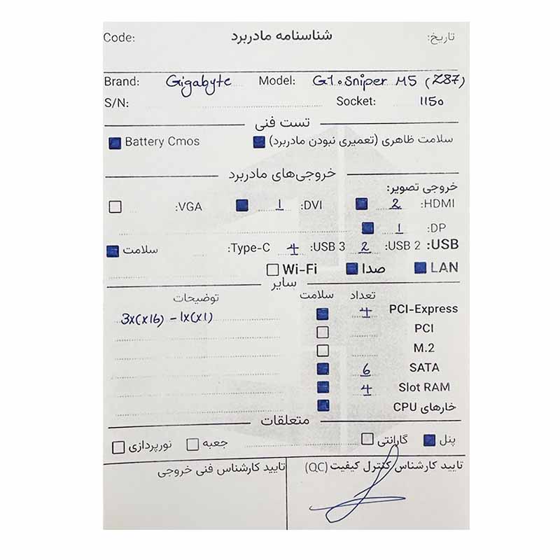 مادربرد گیگابایت Gigabyte G1.SNIPER M5 Z87 استوک