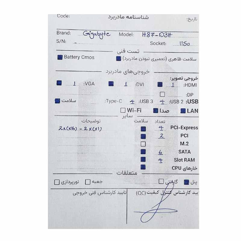 مادربرد گیگابایت Gigabyte H87 D3H استوک