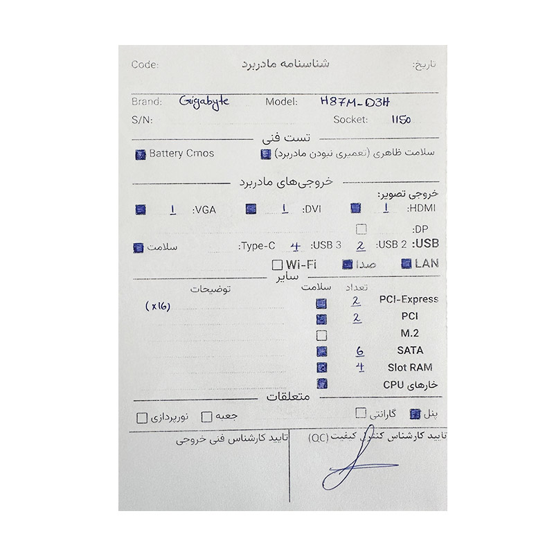 مادربرد گیگابایت Gigabyte H87M D3H استوک