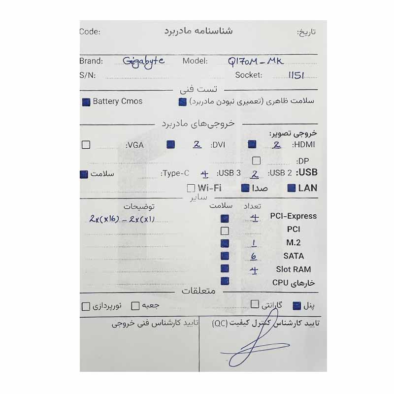 2 دیدگاه برای مادربرد گیگابایت Gigabyte Q170M-MK استوک
