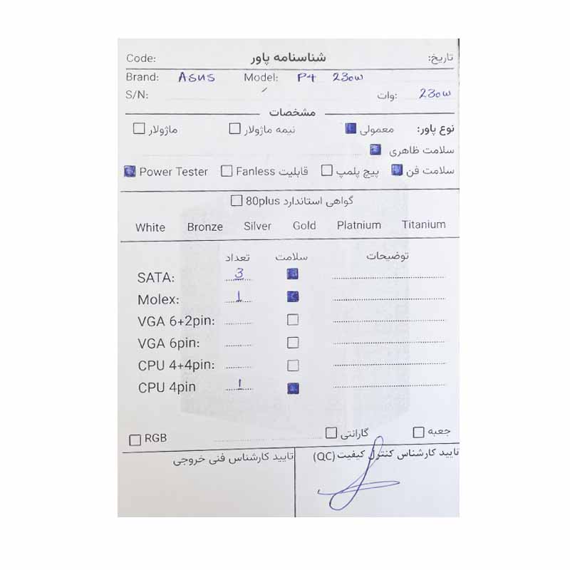 پاور 230 وات ایسوس Asus P4 استوک