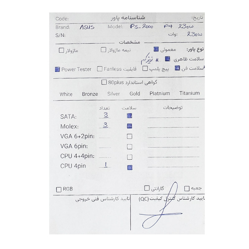 پاور 230 وات ایسوس Asus PS 2000 P4 *استوک
