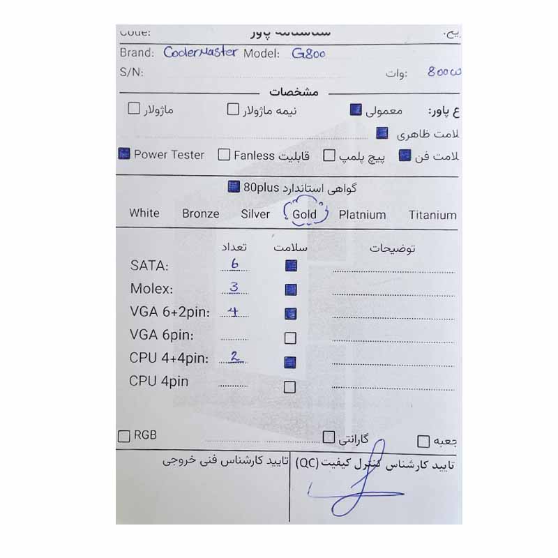 پاور 800 وات کولرمستر Cooler Master G800 استوک