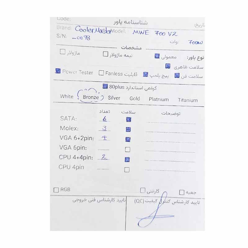 1 دیدگاه برای پاور کولر مستر Cooler Master MWE V2 700 استوک