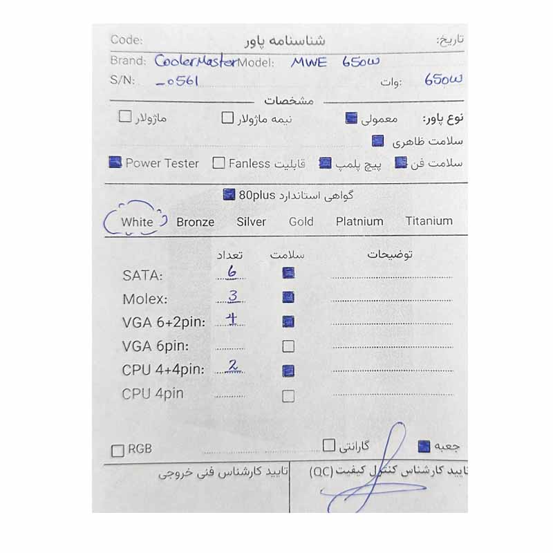 برررسی مشخصات فنی برای خرید پاور 650 کولر مستر