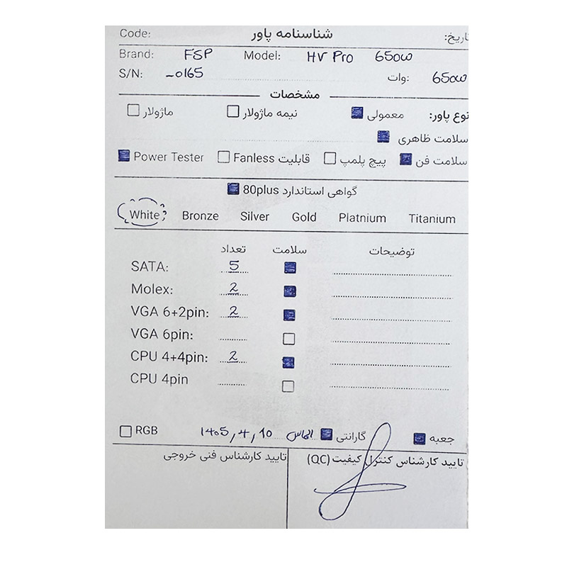 پاور 650 وات FSP HV PRO 650W استوک گارانتی تا 1405/04