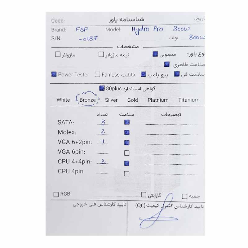 پاور 800 وات FSP Hydro PRO 800W استوک