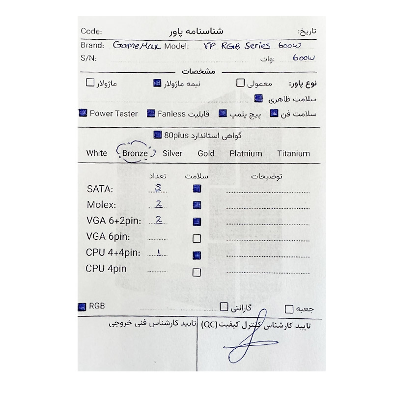 - دارای استاندارد 80PLUS Bronze