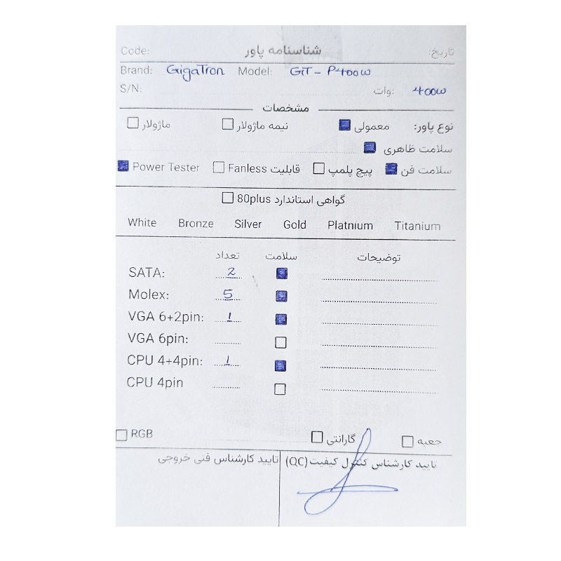 پاور 400 وات گیگاترون Gigatron GT-P400W استوک