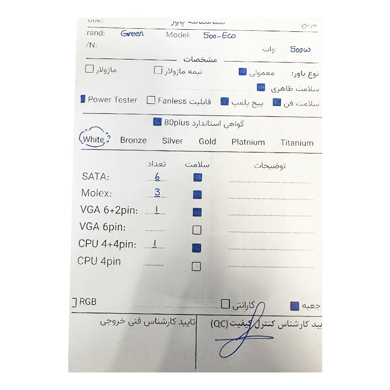 پاور 500 وات گرین Green 500A ECO استوک در حد نو