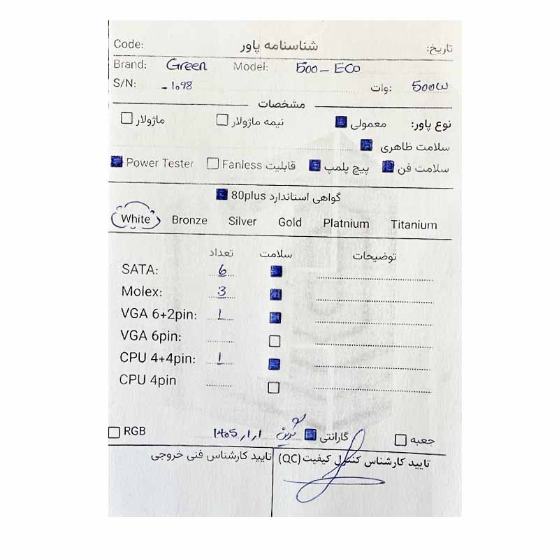 پاور 500 وات گرین Green 500A ECO استوک گارانتی تا 1405/01