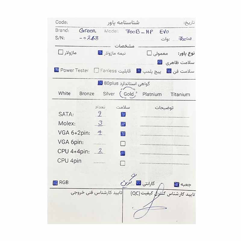 1 دیدگاه برای پاور 700 وات گرین Green 700B-HP EVO استوک گارانتی تا 1408/05