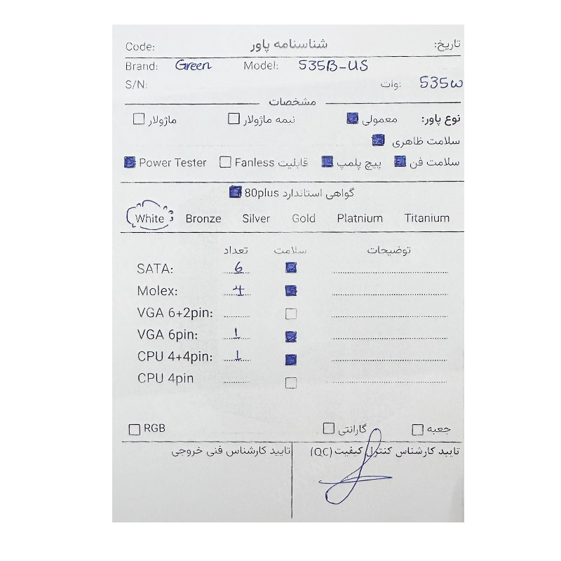 اولین نفری باشید که دیدگاهی را ارسال می کنید برای “پاور 535 وات گرین Green GP535B-US استوک” لغو پاسخ