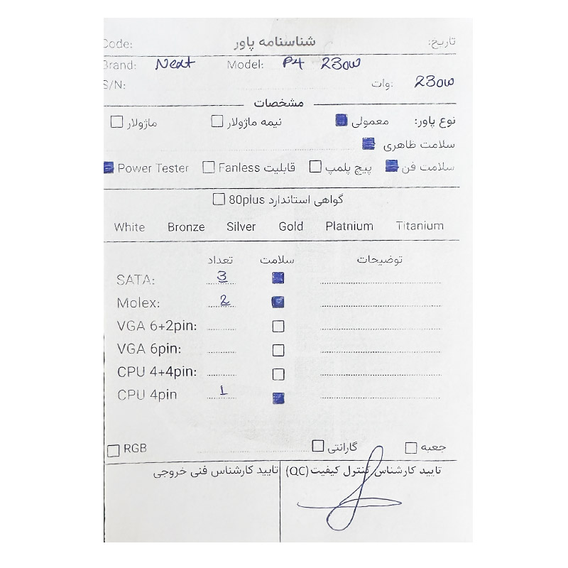 پاور 230 وات نکست NEXT 850W T.C P4 استوک
