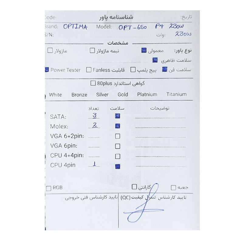 پاور 230 وات Optima OPT-650 P4 230W استوک