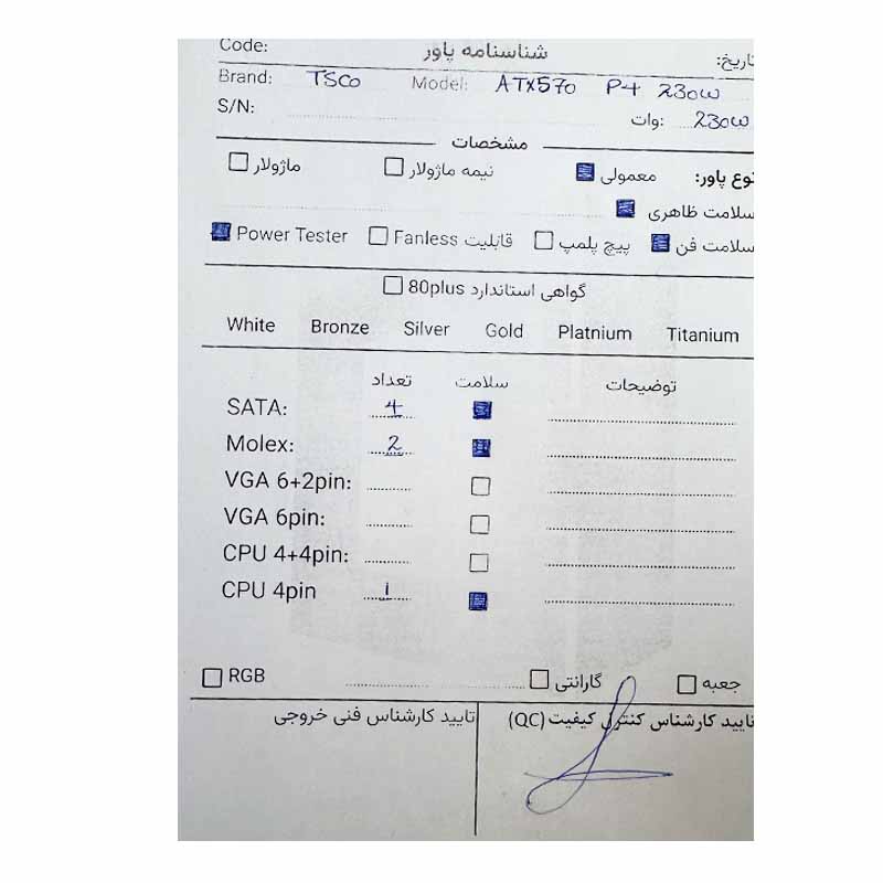 پاور 230 وات تسکو TSCO P4 ATX 570 استوک