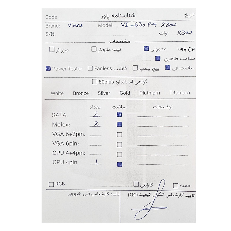 پاور 230 وات ویرا Viera VI-630 P4 230W استوک