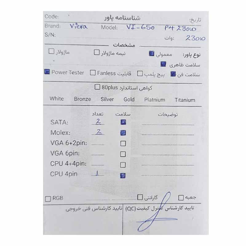 پاور 230 وات Viera VI 650 P4 230W استوک
