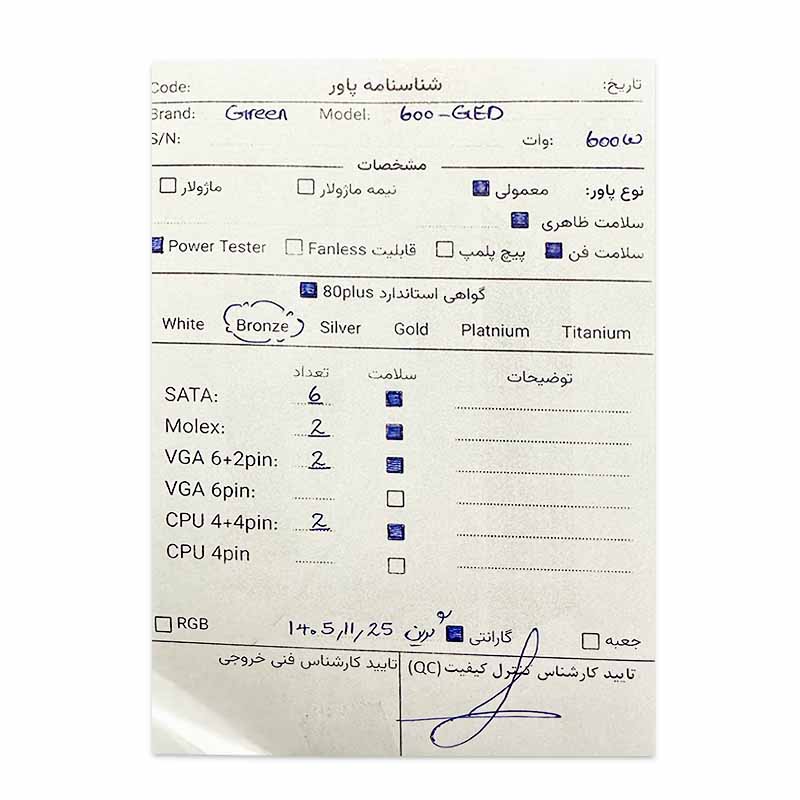 پاور 600 وات گرین Green 600A GED استوک گارانتی تا 1405/11