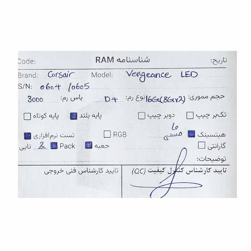 پک رم کورسیر Corsair Vengeance LED 16GB(8×2) DDR4 3000Mhz استوک