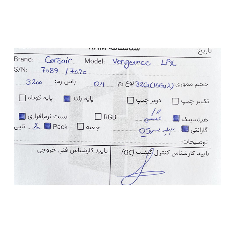 پک رم کورسیر Corsair Vengeance LPX 32GB (16×2) DDR4 3200mhz استوک