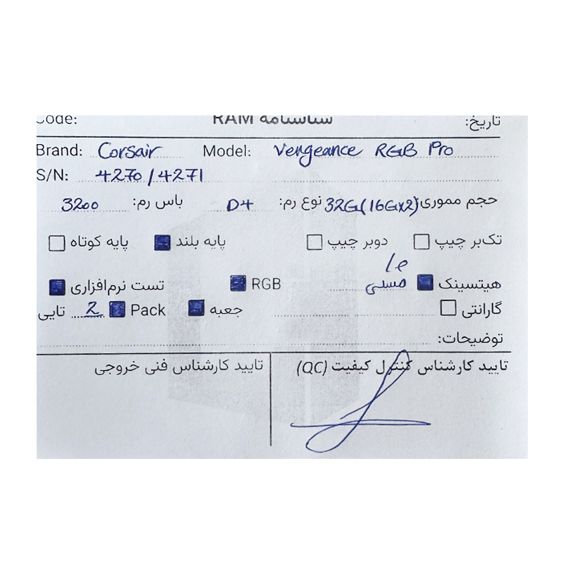 مشخصات فنی رم 32 گیگ Corsair Vengeance 32GB (16GBx2) 3200MHZ DDR4 :