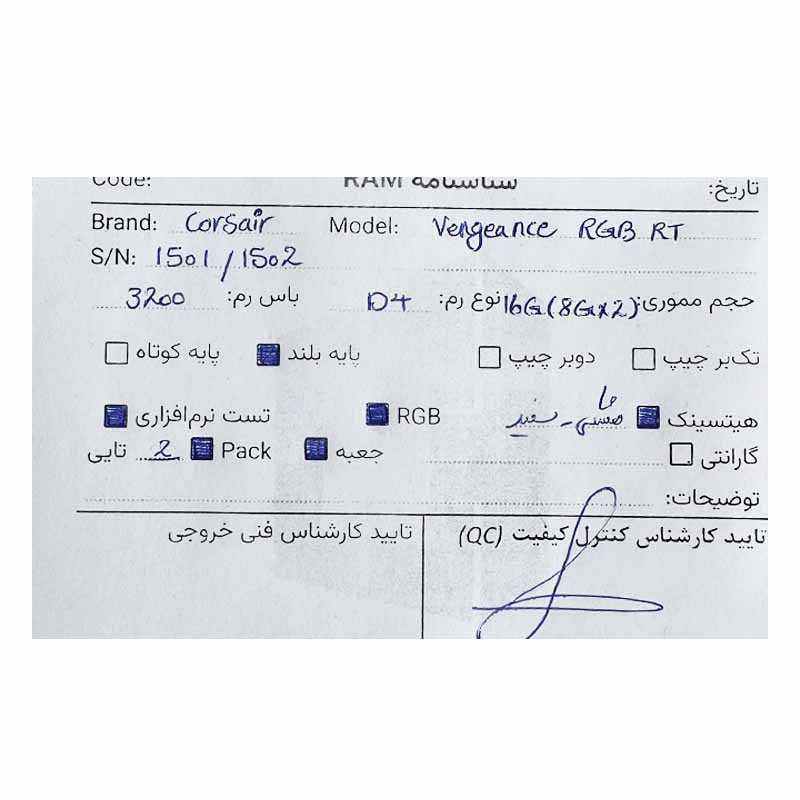 رم کورسیر Corsair Vengeance RGB RS 16GB DDR4 3200 استوک