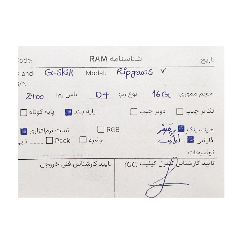 رم جی اسکیل G.SKILL Ripjaws V 16GB DDR4 2400Mhz استوک در حد نو