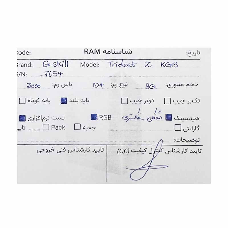 رم جی اسکیل G.SKILL Trident Z RGB 8GB DDR4 3000Mhz استوک