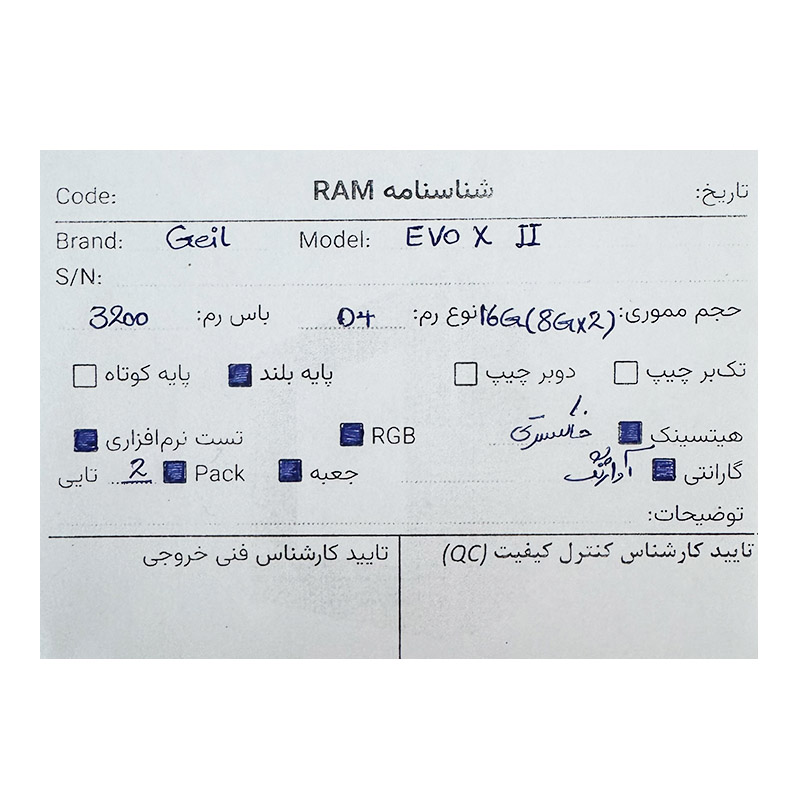 پک رم گیل Geil Evo X II RGB 16GB (8GBX2) DDR4 3200Mhz استوک گارانتی آواژنگ