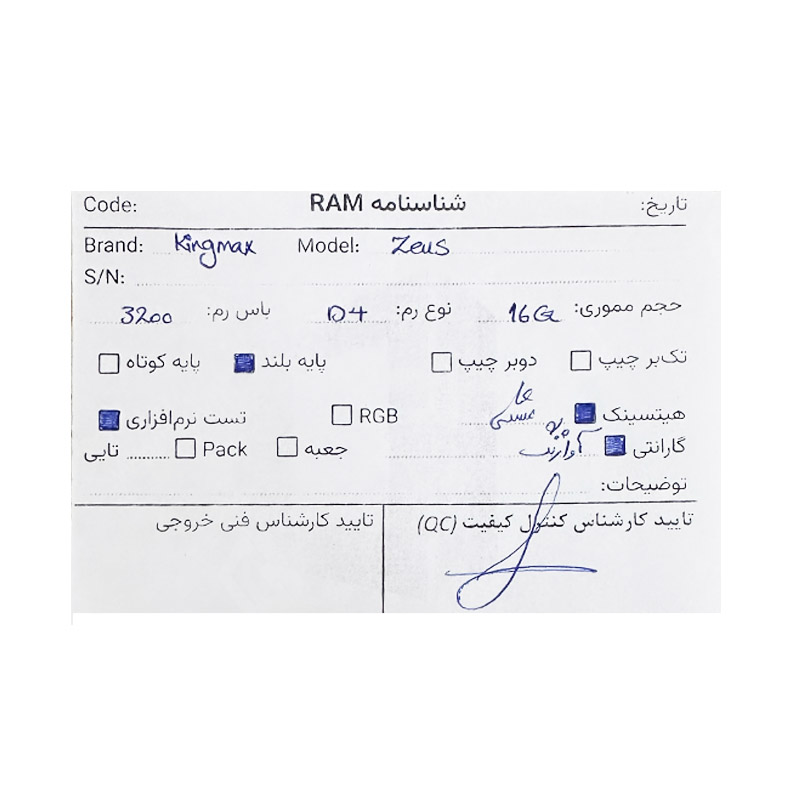 رم کینگ مکس Kingmax Zeus 16GB DDR4 3200Mhz استوک در حد نو با گارانتی آواژنگ
