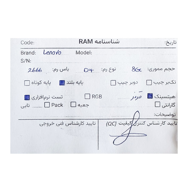 رم 8 گیگ Lenovo 8GB DDR4 2666Mhz استوک در حد نو