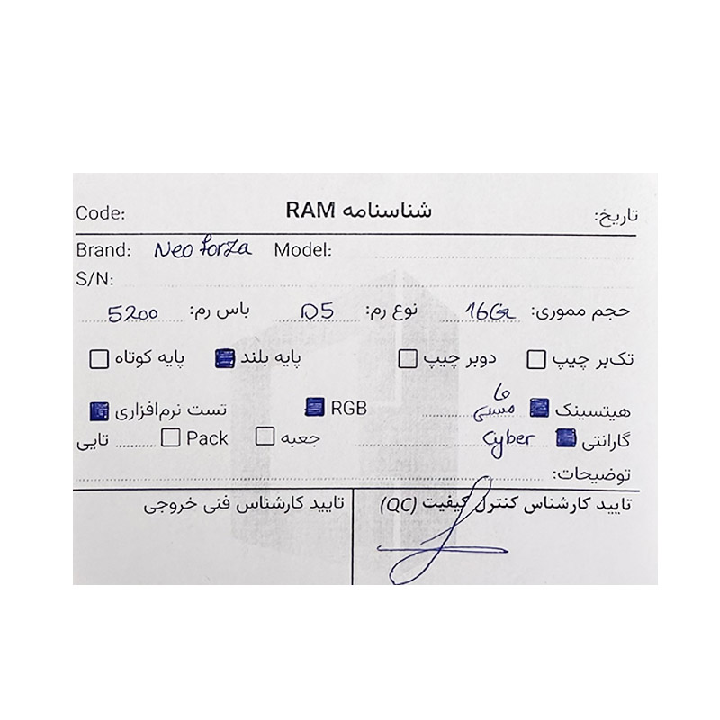 رم Neo Forza RGB 16GB ddr5 5200Mhz استوک در حد نو