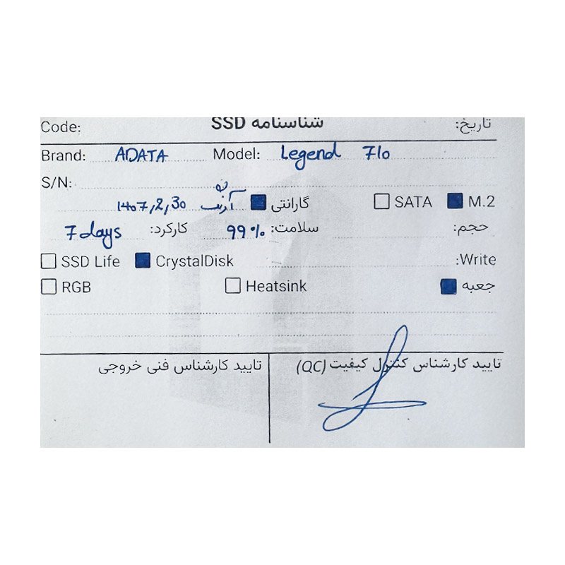 حافظه ای دیتا ADATA 2280 Legend 710 M.2 256GB SSD 99 استوک گارانتی تا 1407/02