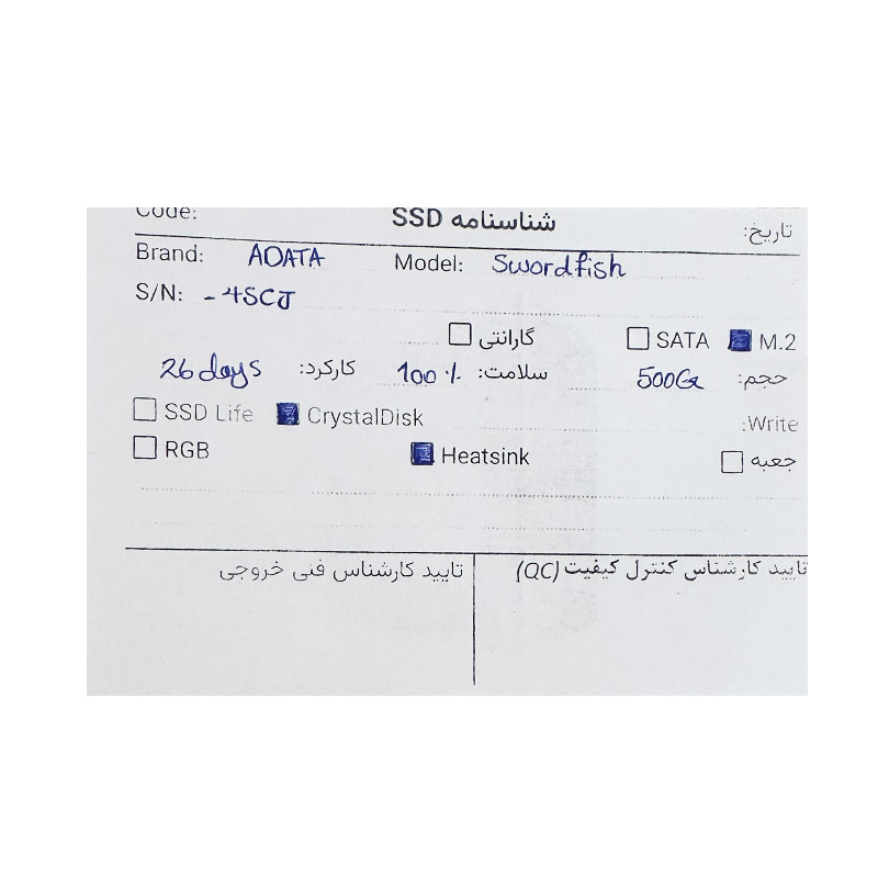حافظه ایدیتا Adata Swordfish M.2 2280 500GB استوک در حد نو