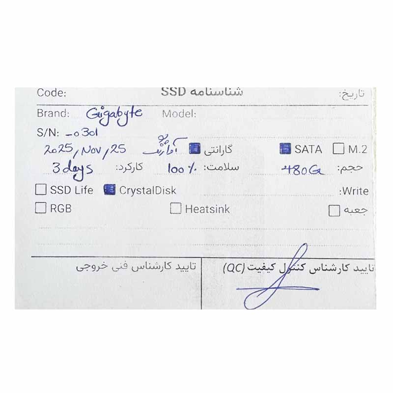حافظه گیگابایت Gigabyte 480GB SSD استوک گارانتی تا 1404/09
