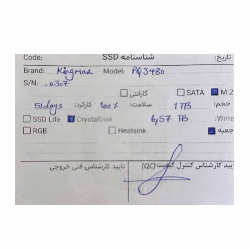اس اس دی KINGMAX PQ3480 SSD NVMe M.2 1TB استوک گارانتی تا 1406/09