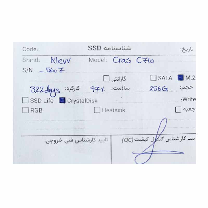 اس اس دی کِلِو Klevv Cras C710 M.2 256GB SSD 97 استوک
