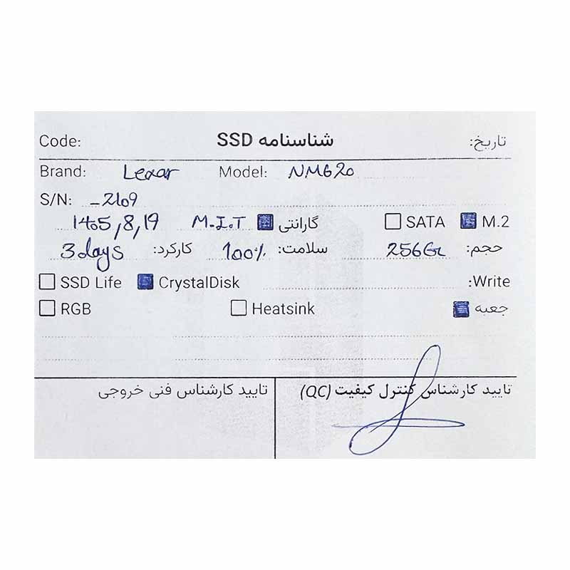 اس اس دی Lexar nm620 M.2 256GB استوک گارانتی تا 1405/08