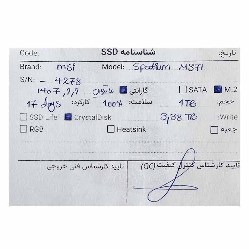 اس اس دی MSI M.2 NVME Spatium M371 1TB استوک گارانتی تا 1407/09
