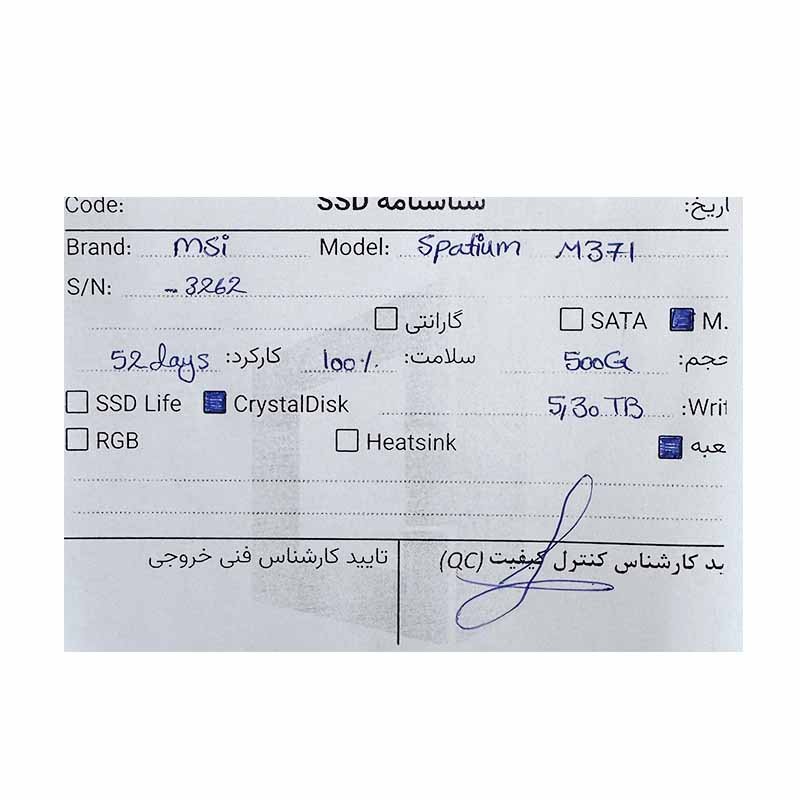 اس اس دی MSI M.2 NVME Spatium M371 500GB استوک گارانتی تا 1407/11