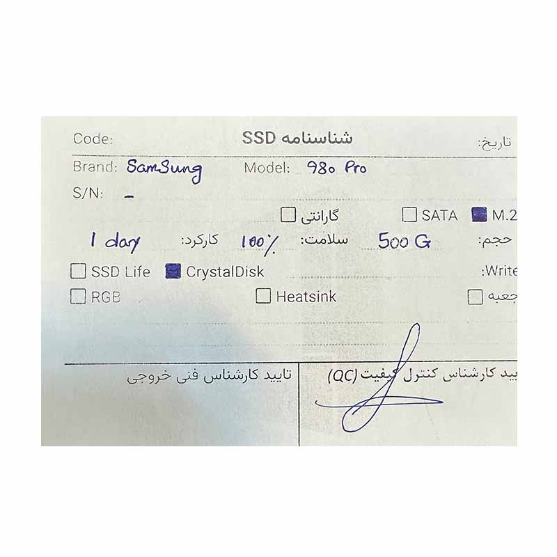 حافظه Samsung 980 Pro NVMe M.2 500G استوک