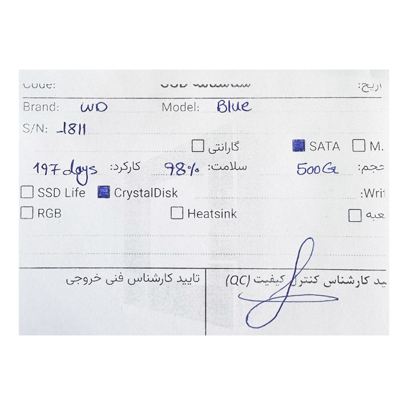 اس اس دی وسترن WD SSD Blue 500GB 98 استوک