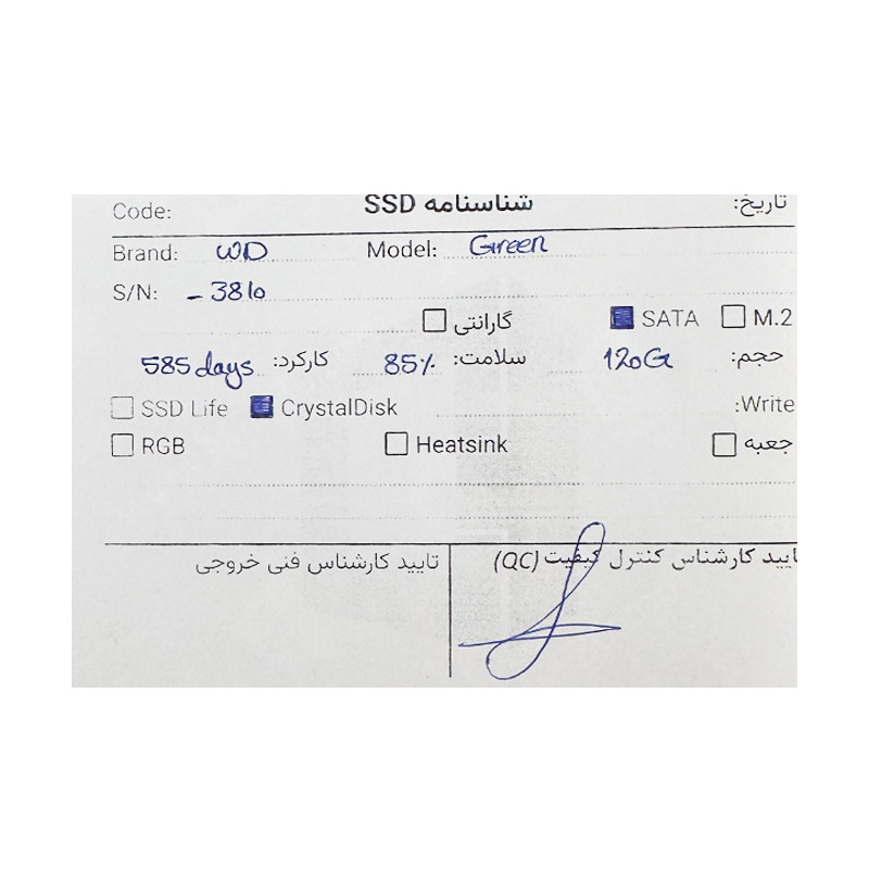 اس اس دی Western Digital Green 120GB SSD 85 استوک